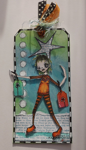 The bright colours of this one really caught my eye, and the wings - I just love the wings! Such a great way to alter a clothing tag.