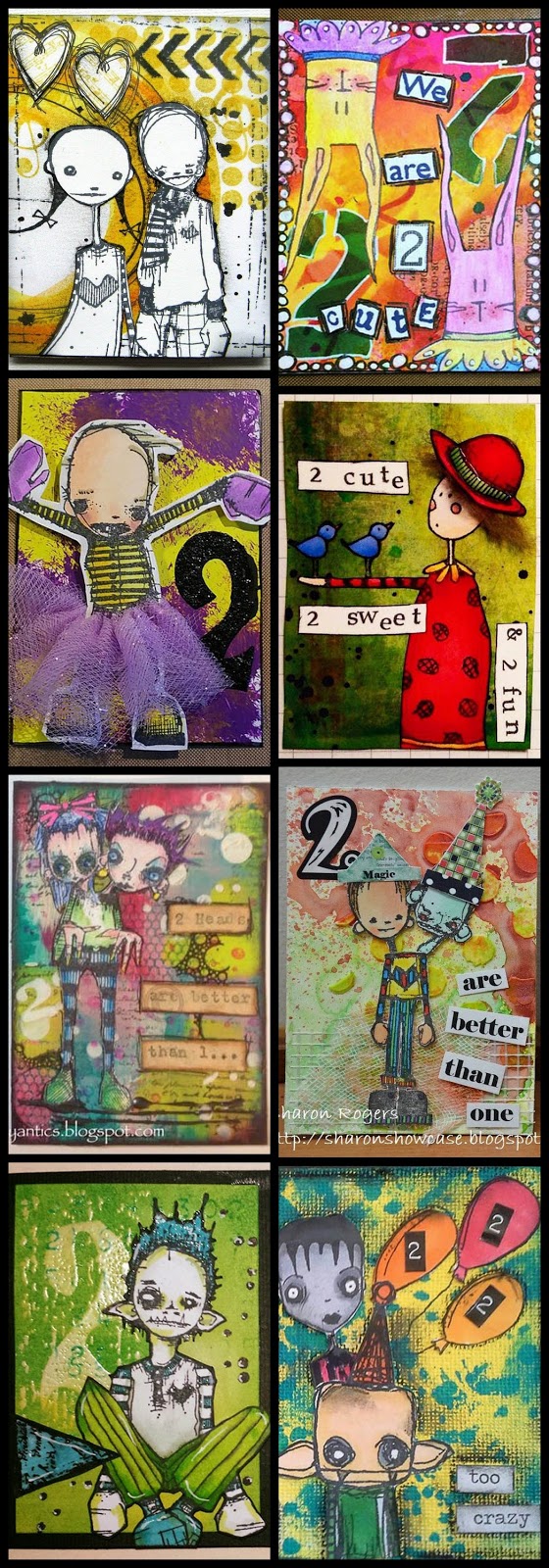 Eye candy - all of this month's fabulous ATCs!You can interpret the theme of 2's any way you want. Duos, mirrors, the number two, duplicates - whatever comes to mind. This month's ATC swap players are joining the design team and Shelby Thomas to provide you with oodles of inspiration to play along!